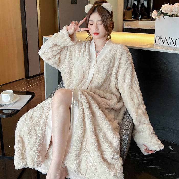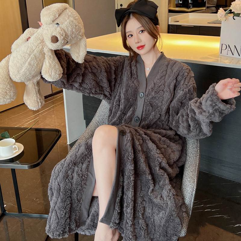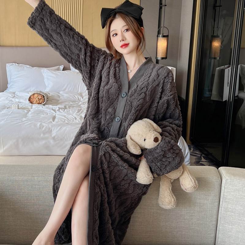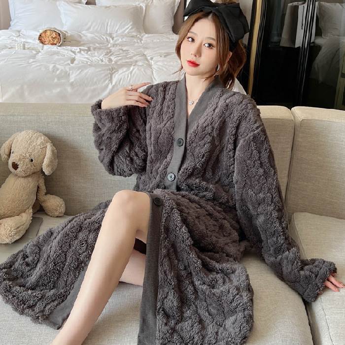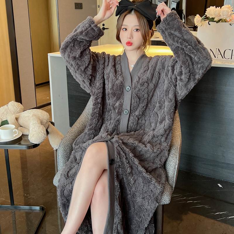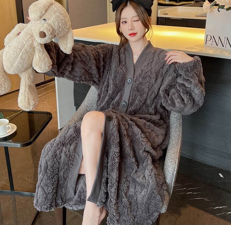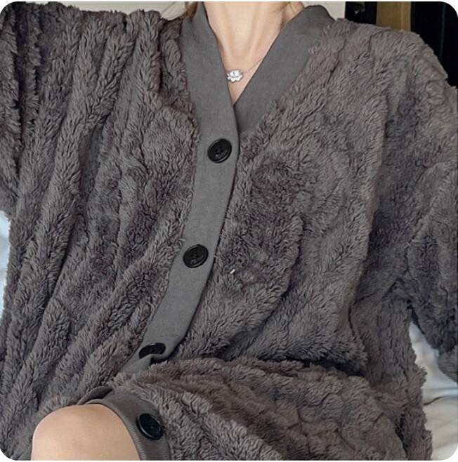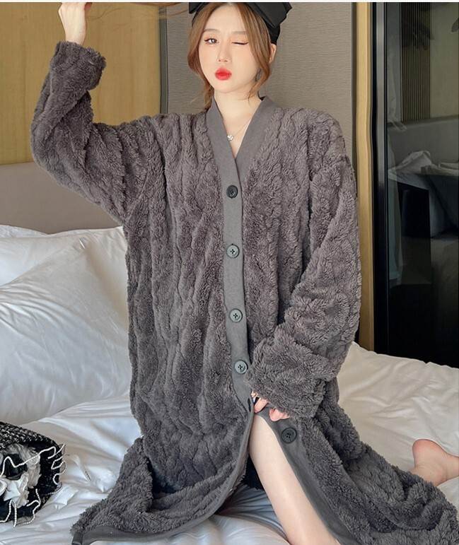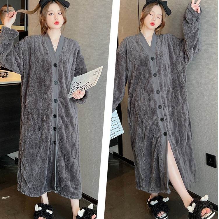 2色 もこもこ ルームウェア パジャマ レディース ナイトウェア ルームウェア ナイトガウン 早い者勝ち グレー アプリコット M L XL 2XL