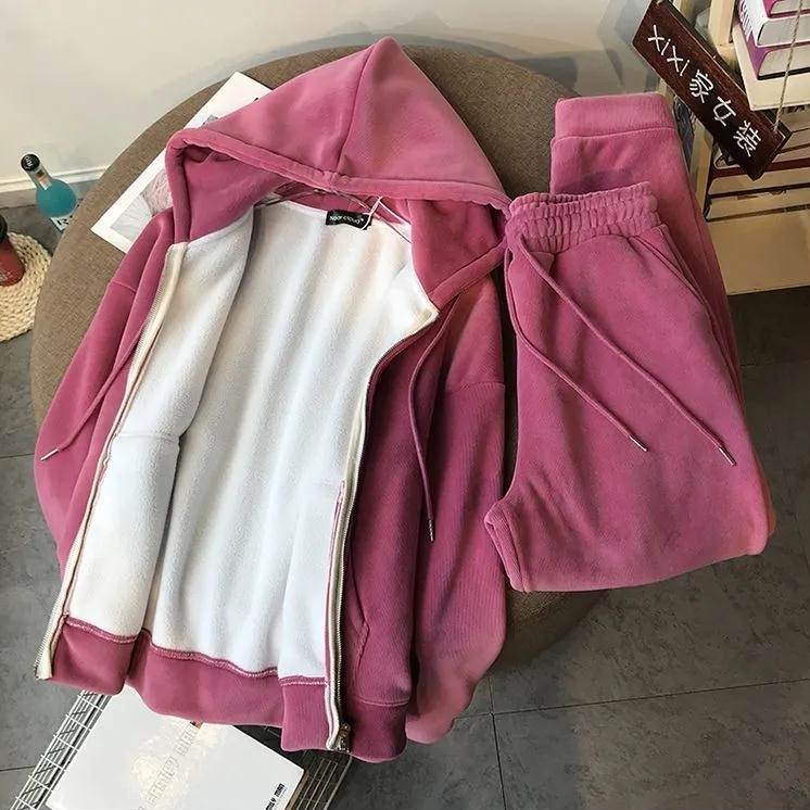 シンプルな抜け感がお洒落なベルベットタッチのセットアップ。