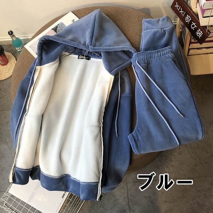 3色 セットアップ スウェット パンツ ジャージ 上下セット ローズレッド ブルー ブラック 赤 青 黒 フード付き パーカー 前開き 個性的 かっこいい スポーツウエア スポーティー ズボン ルーズ