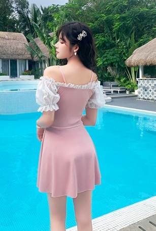 フェミニンな袖ありワンピース水着です
