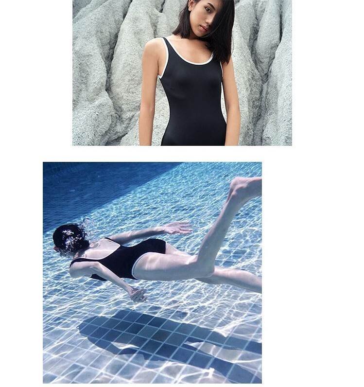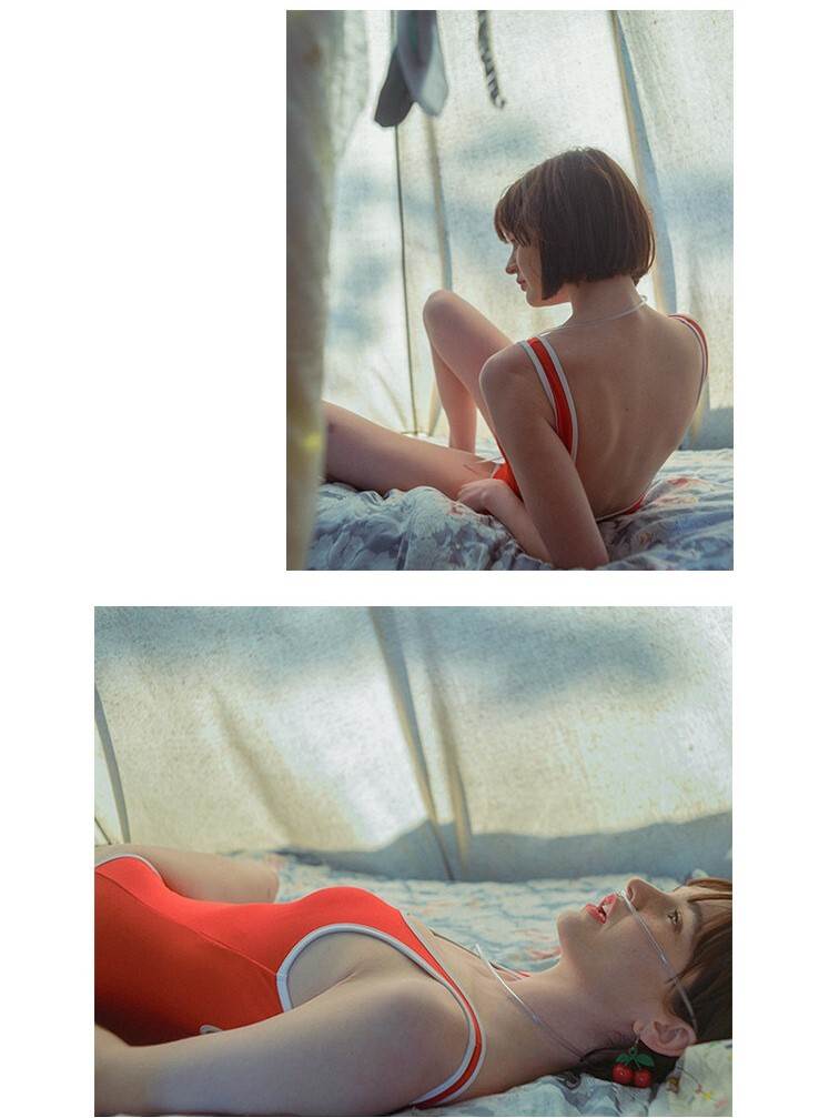 4色 ワンピース 水着 レディース スクール風 レトロ 可愛い シンプル 背中空き バックシャン 海外 モノキニ かわいい 体型カバー お腹カバー ピンク 赤 紫 レッド パープル ブラック 黒