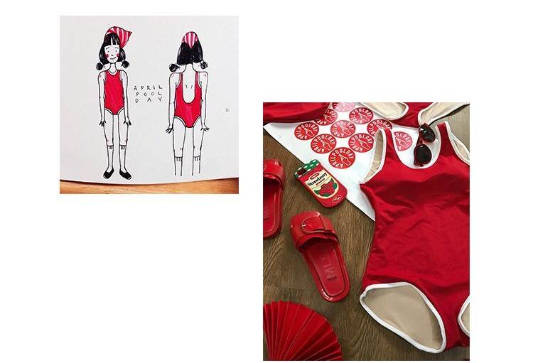 大きくあいた背中が印象的な可愛らしい水着です♪