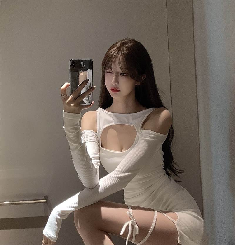 胸元見せ&肩出しデザインが可愛くセクシーなミニ丈ニットワンピ