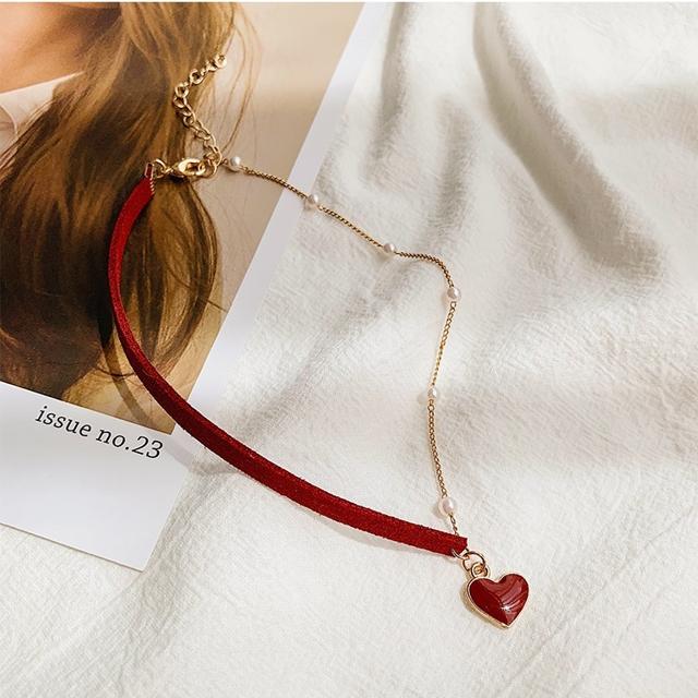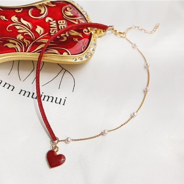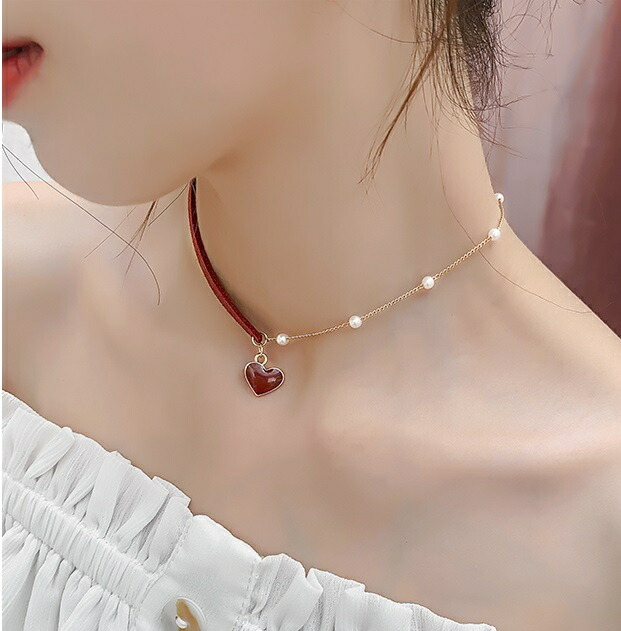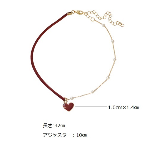 ネックレス レディース おしゃれ ペンダント チョーカー ハート パール ゴールド 赤 真珠 アシンメトリー 石 大人可愛い きれいめ 大人 デイリー 上品 アクセサリー ジュエリー プレゼン 結婚式