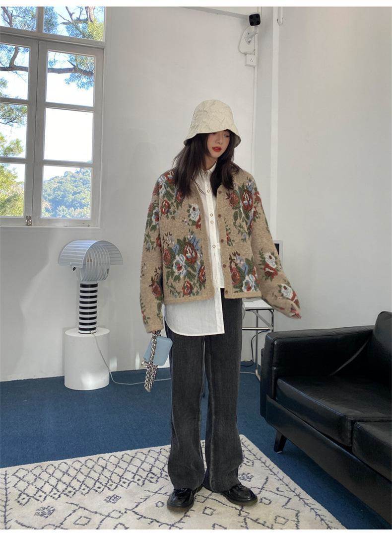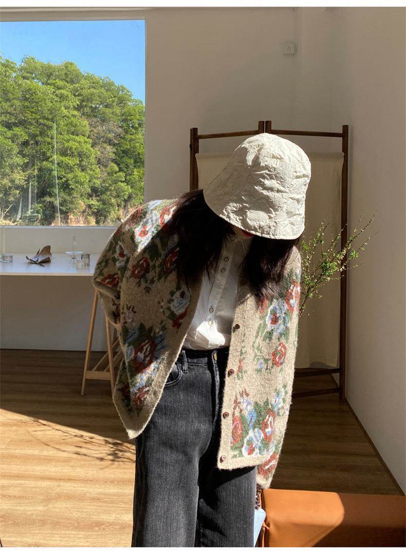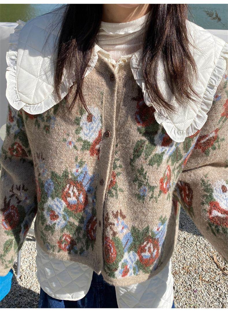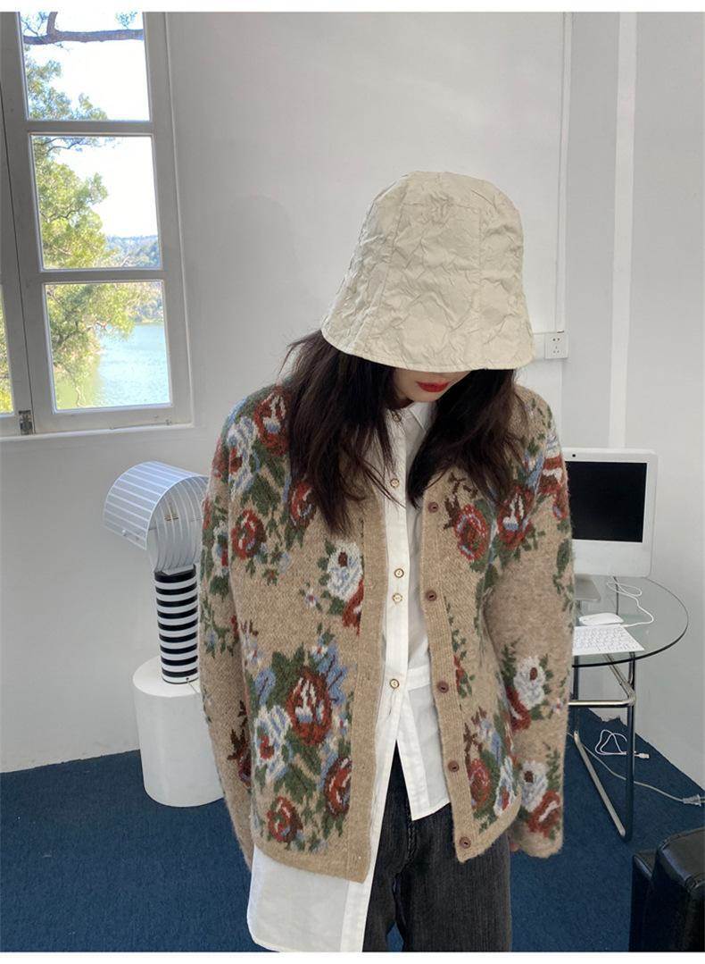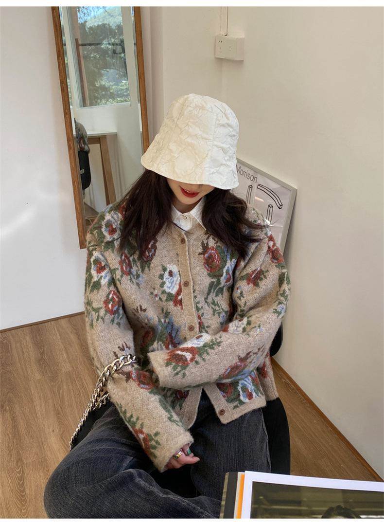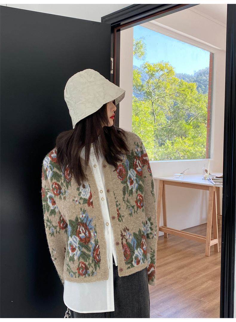2色 花柄 ニット トップス カーディガン 羽織り アウター 大花柄 ゆったり ルーズ レトロ 着回し シック カジュアル モテる 着痩せ レディース ワンサイズ フリーサイズ 春 冬 サマー オ 秋