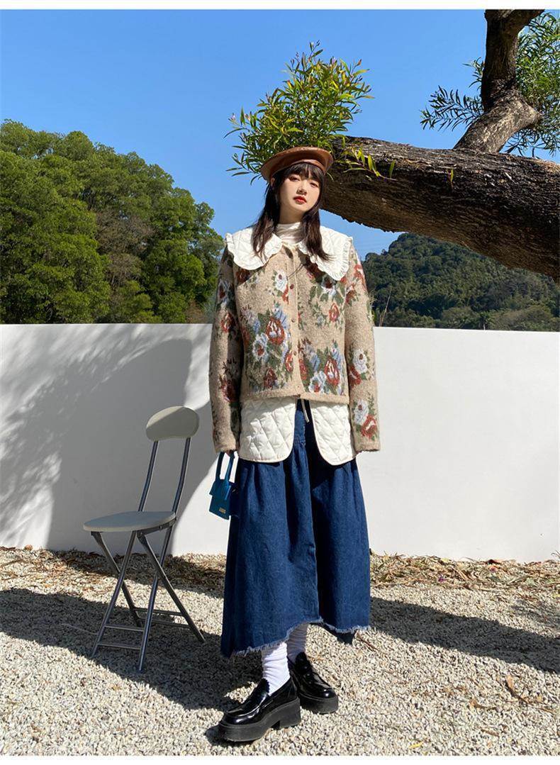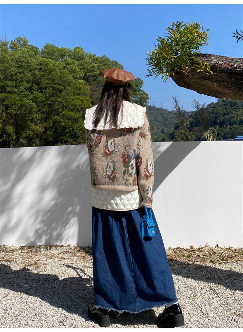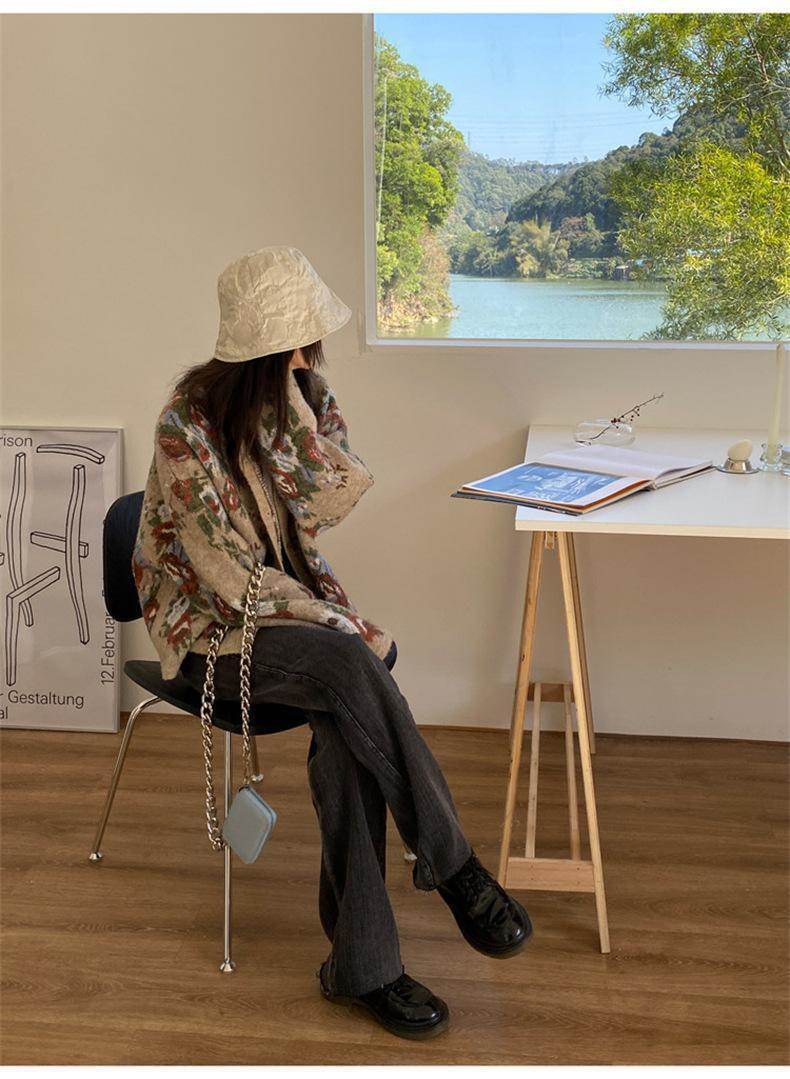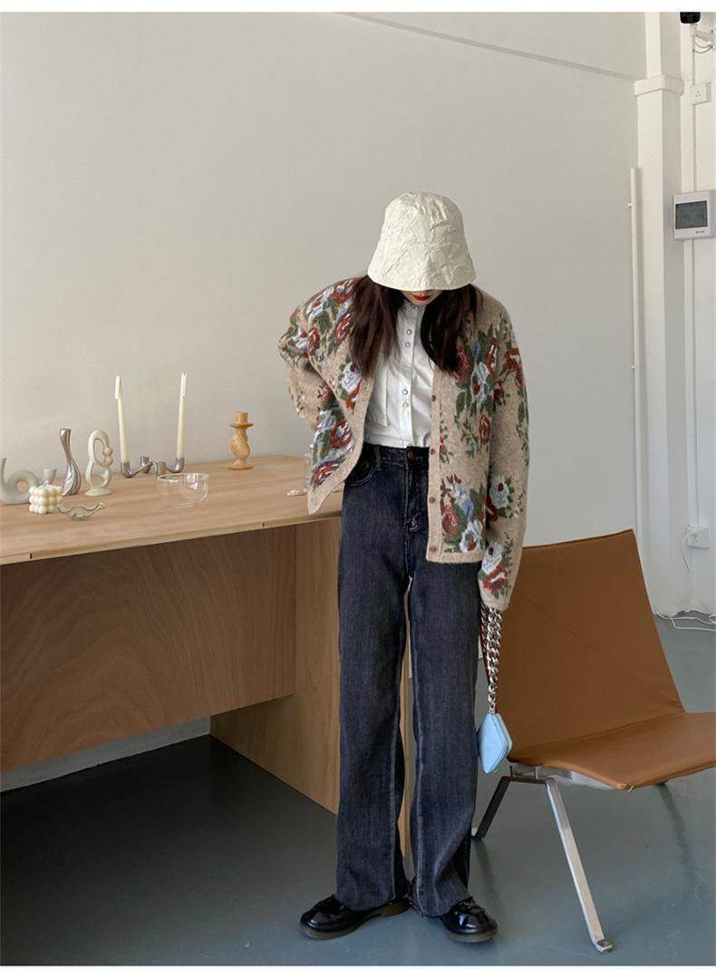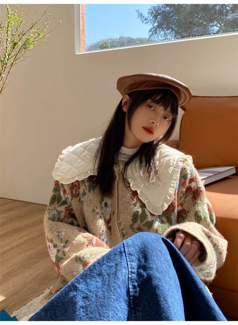 2色 花柄 ニット トップス カーディガン 羽織り アウター 大花柄 ゆったり ルーズ レトロ 着回し シック カジュアル モテる 着痩せ レディース ワンサイズ フリーサイズ 春 冬 サマー オ 秋
