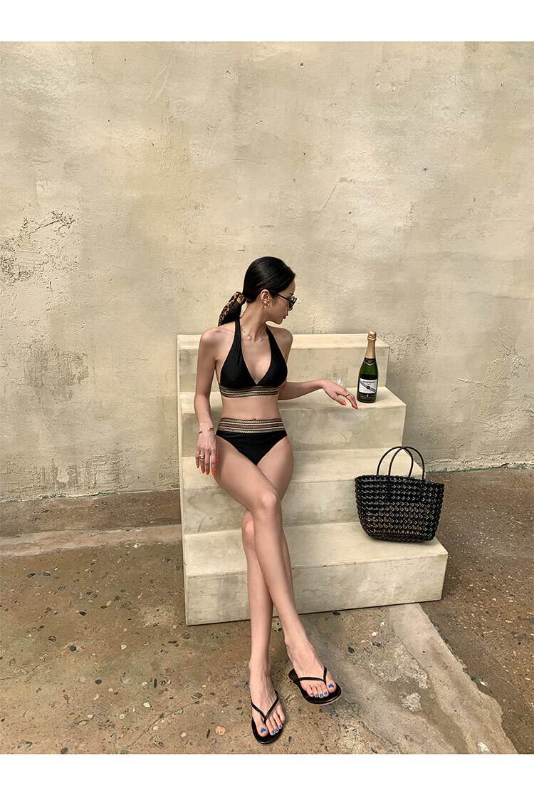 ビキニ 水着 レディース 黒 ホルターネック セクシー カッコイイ セパレート 上下セット ハイレグ sexy ブラジリアン ブラック 無地 柄 アジアン エスニック 女性用 個性的 海外 大人