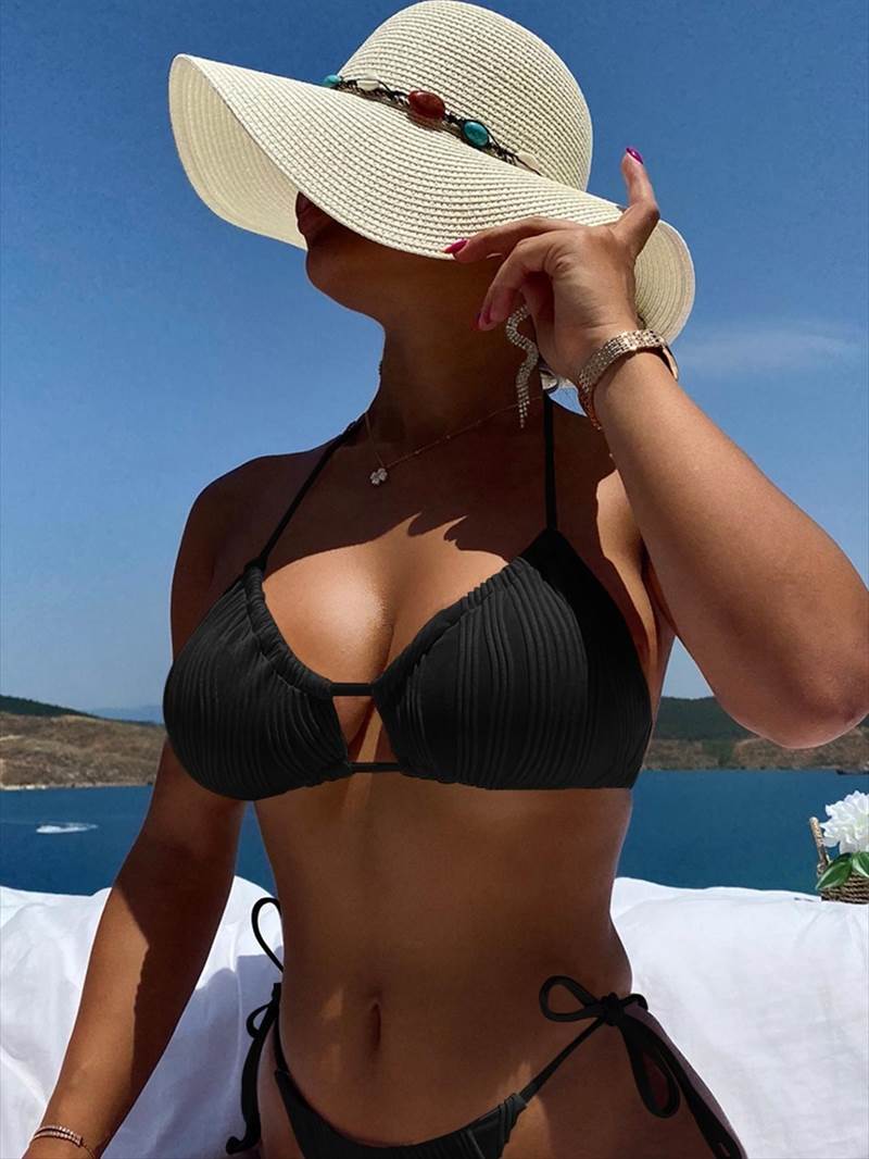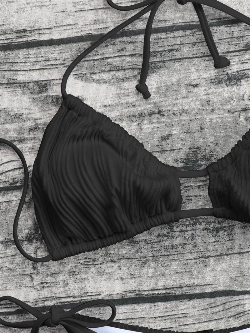 5色 ブラジリアン ビキニ 水着 レディース セクシー 紐ビキニ ホルターネック シャーリング マイクロビキニ パッド付き トライアングル かっこいい クール リボン 個性的 ヘルシー