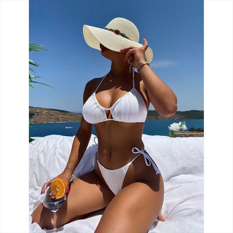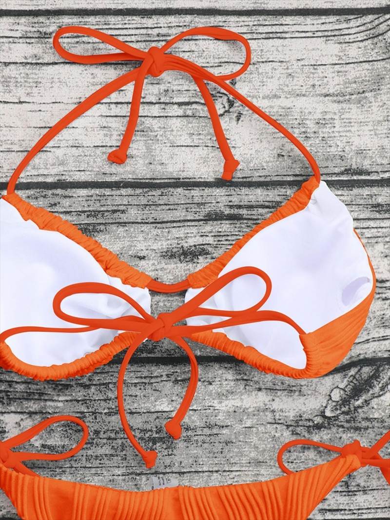 5色 ブラジリアン ビキニ 水着 レディース セクシー 紐ビキニ ホルターネック シャーリング マイクロビキニ パッド付き トライアングル かっこいい ヘルシー クール シャーリング リボン 個性的 シンプル 黒 白 緑 オレンジ 無地 大きいサイズ ハイレグ 海外 水着 モデル 撮影 ビーチウェア サマー スイムウェア セクシービキニ 三角ビキニ 10代 20代 30代 リゾート S M L ホワイト ベージュ ブラック オレンジ グリーン 脚長 写真 撮影 グラビア db4638