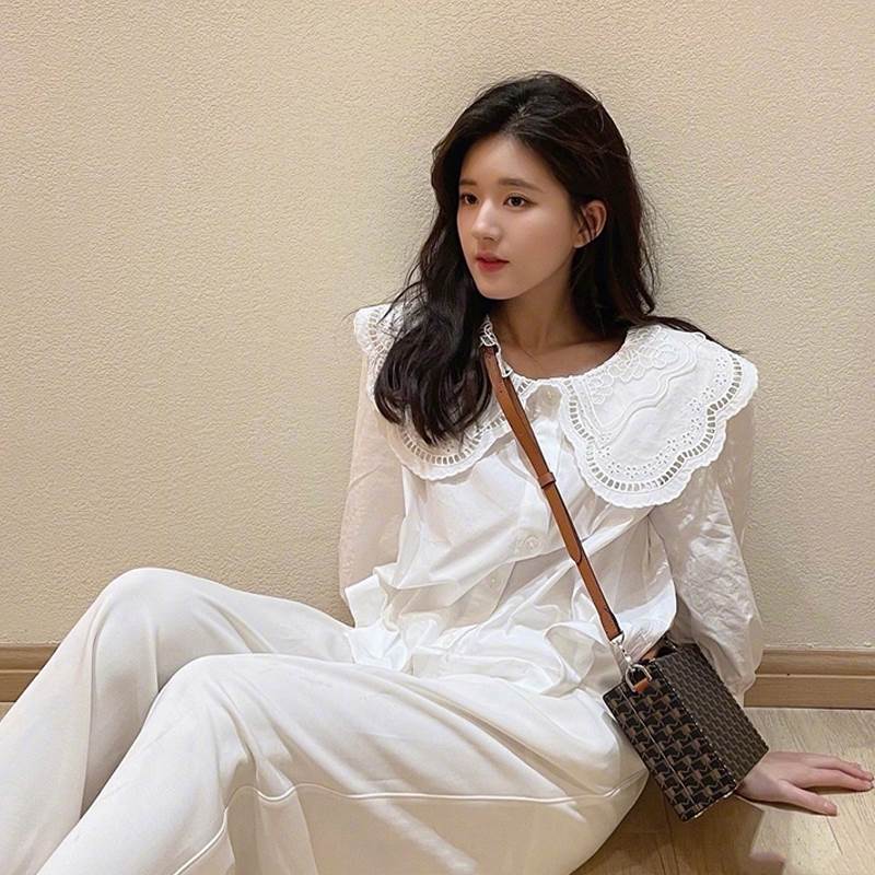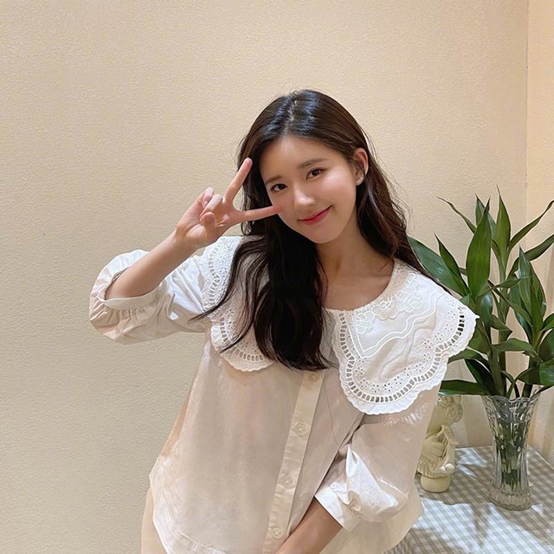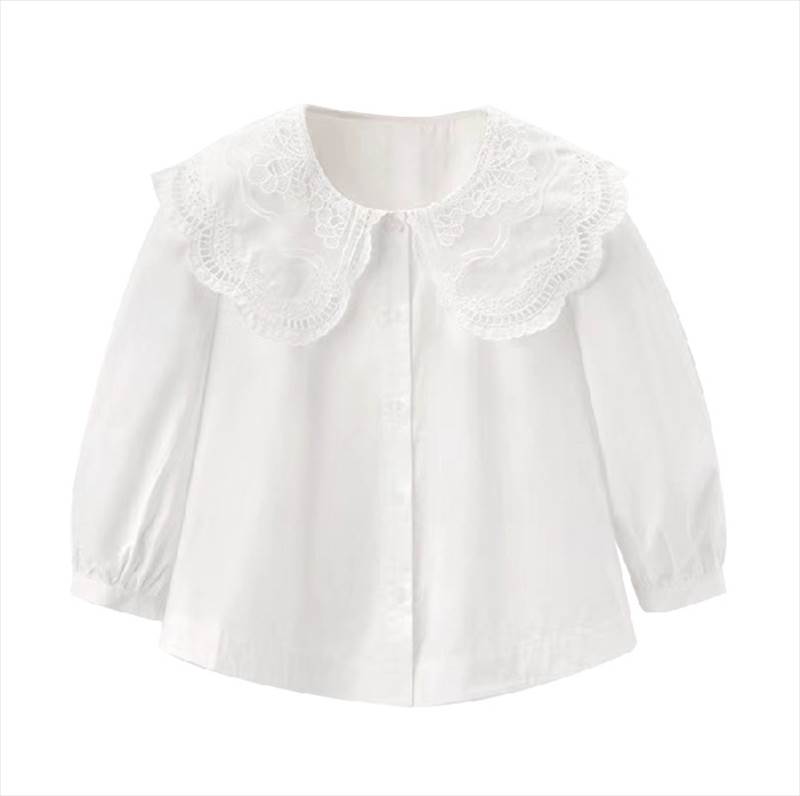 白 シャツ ブラウス 長袖 ビッグカラー レース フリル 無地 襟付き かわいい おしゃれ レディース トップス 女の子 シンプル クール 大人女子 こなれ感 お洒落 かっこいい