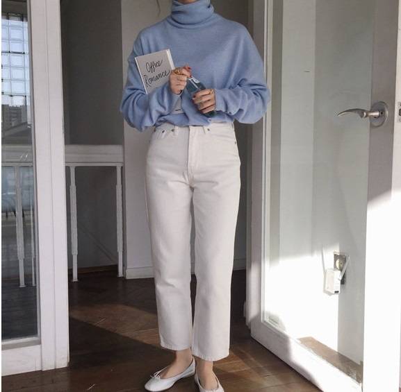 くしゅくしゅタートルネックにドロップショルダーを合わせたアイテム
