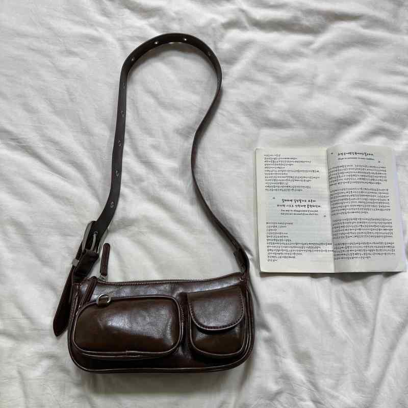 ショルダーバック カッコイイ クール ジッパー ボディバッグ 斜め掛けバッグ 女性用 こなれ感 横長 渋色 メンズライク 大学生 レトロ 学校 スクール 旅行 お出かけ