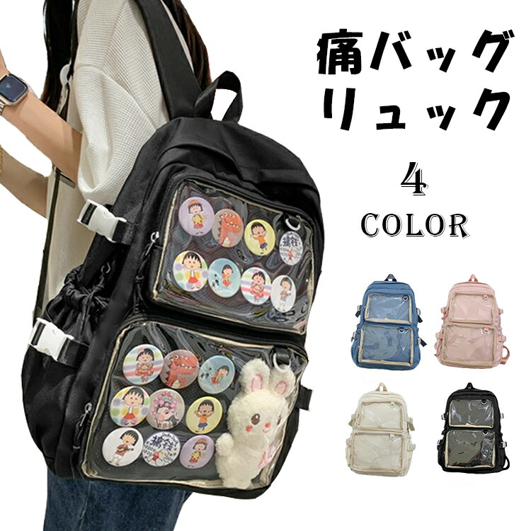 痛バッグ リュック 鞄 レディース ガールズ A4 痛バ 大容量 缶バッチ デイリー 通学 学生 ビニールバッグ ヲタバ カバン 透明バッグ 見せバッグ オタクバッグ クリアバッグ