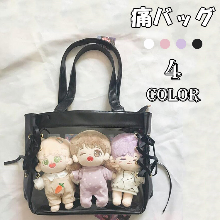 痛バッグ バッグ 痛バ レースアップ レディース ショルダーバッグ トートバッグ いたば リボン A4 a4 大容量 クリアバッグ 推し 推し活 ぬいぐるみ オタク オタク活 オタクバッグ 缶バッチ