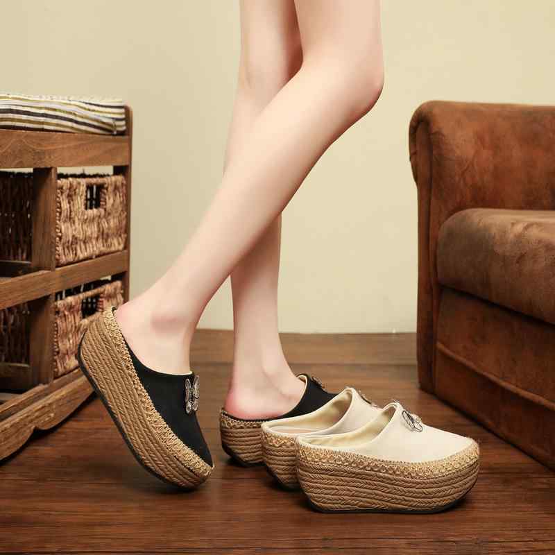 厚底サンダル サボ 個性的 他にない チョウチョ 虫 ユニーク 映える プラットフォーム 春シューズ 夏シューズ キャンバス 帆布 靴 オリエンタル 高ヒール 身長アップ