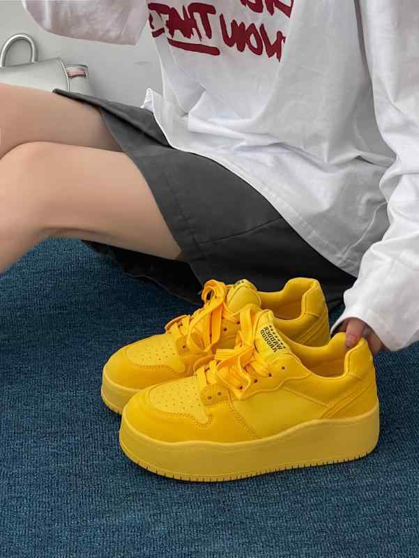 厚底スニーカー 黄色 イエロー ピンク ビビッドカラー 可愛い スニーカー 韓国系 華やか ポップ 個性的 運動靴 レディース 無地 ワントーン 単色 目立つ オルチャン 女子 元気 夏色 夏 明るい