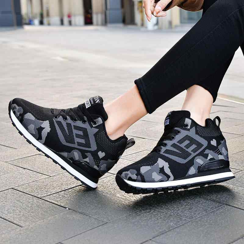 迷彩柄 スニーカー レディース かっこいい 7cm ウェッジソール 個性的 運動靴 緑 グリーン 黒 ブラック 総柄 モザイク柄 メッシュ 通気性 脚長 こっそり 身長アップ シークレットスニーカー