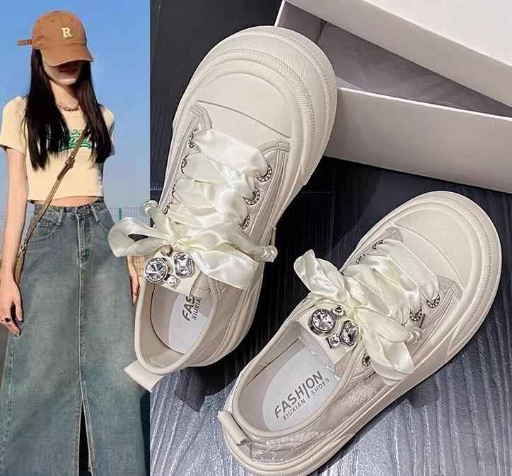 スニーカー 女性用 きらきら ビジュー付 ラインストーン 宝石 ジュエリー 飾り パール リボン フラワー お花 総レース おしゃれ 目立つ 主役級 人気 トレンド 女子