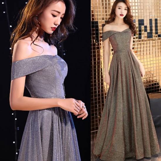 パーティードレス ロング ドレス 演奏会 結婚式 お呼ばれ 二次会 オフショル ラメ キラキラ Aライン おしゃれ フレア ゴールド シルバー 華やか 10代 春 秋 安い 20代
