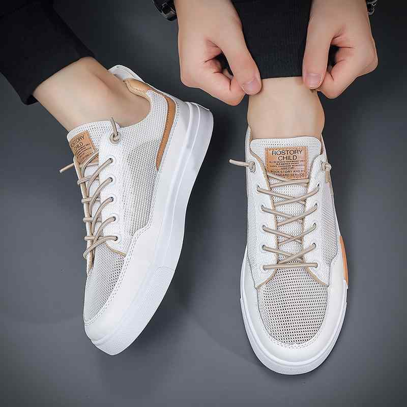 白 スニーカー メンズ メッシュ 通気性 透け感 バイカラー 運動靴 韓国系 フラット おしゃれ 春スニーカー 夏スニーカー ホワイト 肌見せ 涼しげ 爽快 個性的 青 グレー カーキ 網網 ブルー
