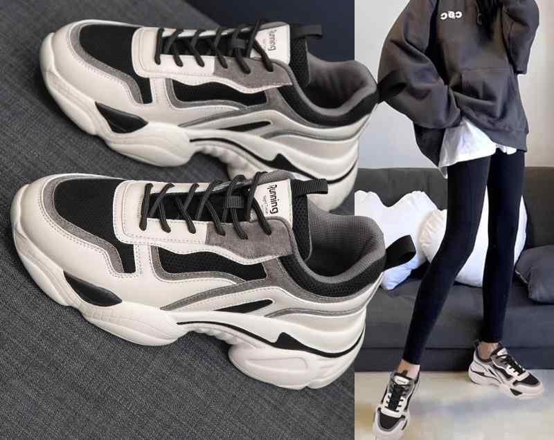スニーカー ゴツい かわいい グレージュ グレーカラー 暗色 渋カラー カッコいい ルーズ ハード ストリート スニーカー 女の子 ダディ お父さん 走りやすい 軽い ラフ