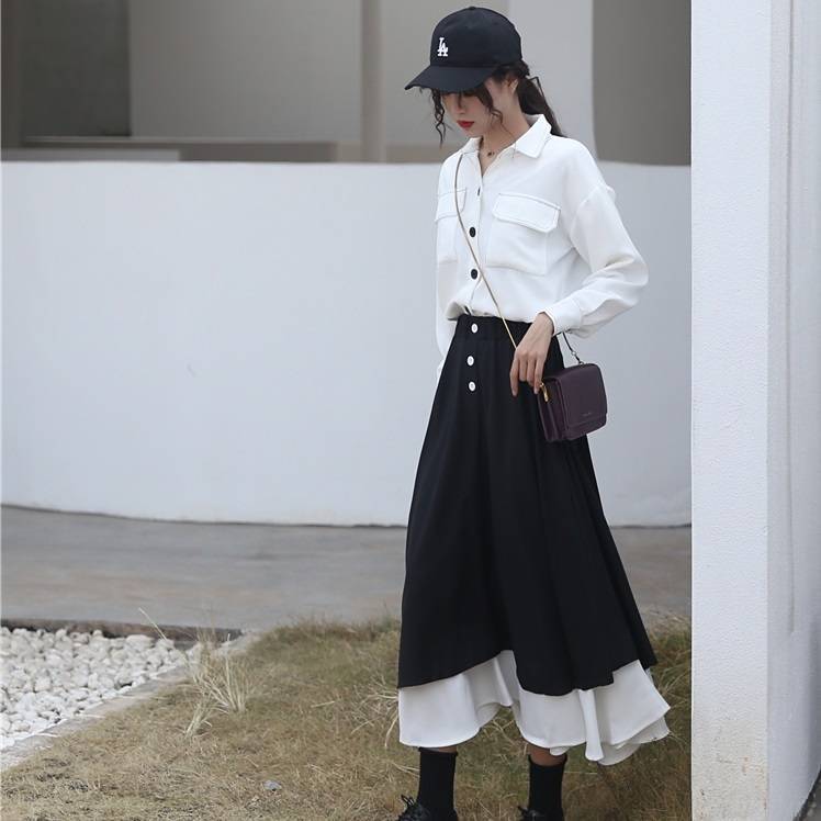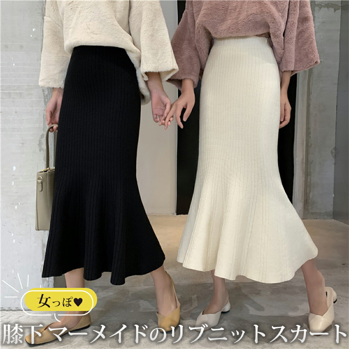 スカート ニット マーメイド 白 黒 無地 大人可愛い フェミニン 春 秋 ミモレ丈 膝下 かわいい 韓国 個性的 レトロ ガーリー ひざ下 ハイウエスト 綺麗