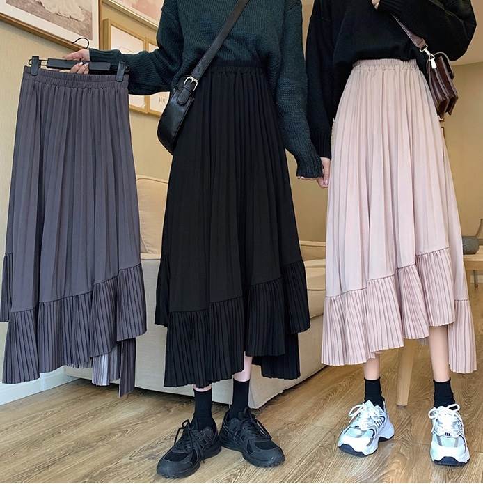3色 スカート ロングスカート ロング プリーツ プリーツスカート アシメ アシンメトリ