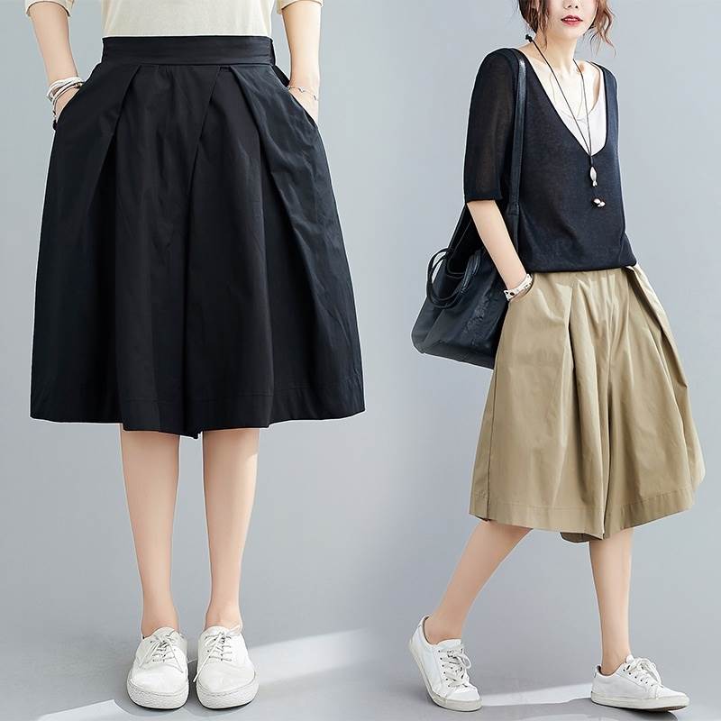 パンツ レディース 半ズボン キュロットスカート ハーフパンツ 膝丈 タック 台形 フレア ミディ丈 おしゃれ 大人可愛い レトロ ガーリー きれいめ ゆったり プラスサイズ 無地 シン 大きいサイズ