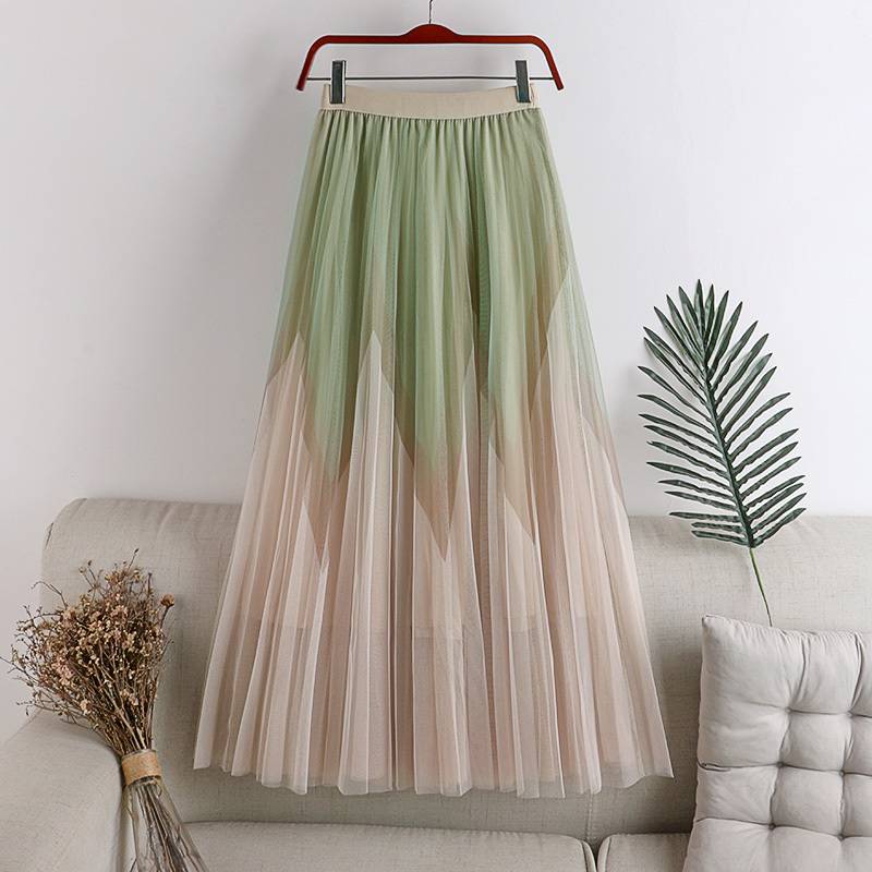3色 スカート レディース チュール 膝下 ミディアム丈 ミモレ丈 ミドル丈 プリーツスカート ウエストゴム シースルー 透け感 おしゃれ 大人可愛い 個性的 カジュアル ルーズ モダン ゆ シンプル