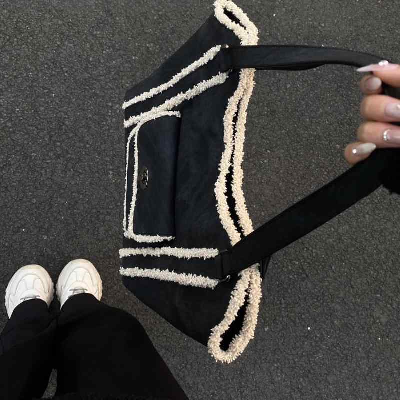 デニムバック デニムトート 大きい ビッグサイズ 4 教科書 カジュアル モコモコ ボア 縁取りデザイン 面白い ルーズ ニュアンス ブルーデニム ブラックデニム